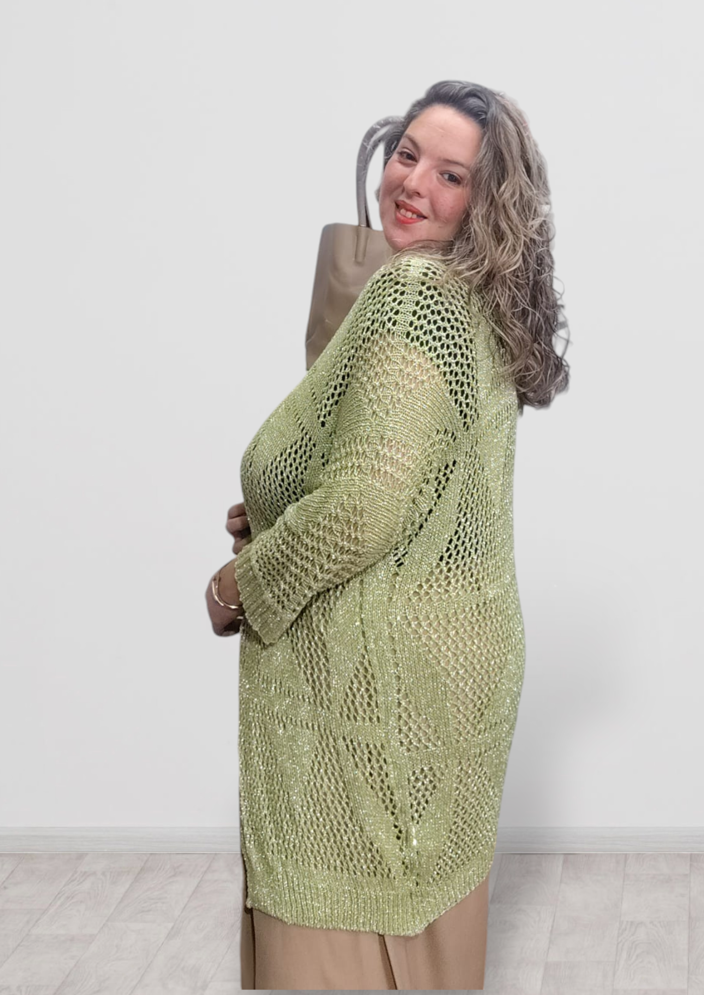 cárdigan de hilo con hijos plateados