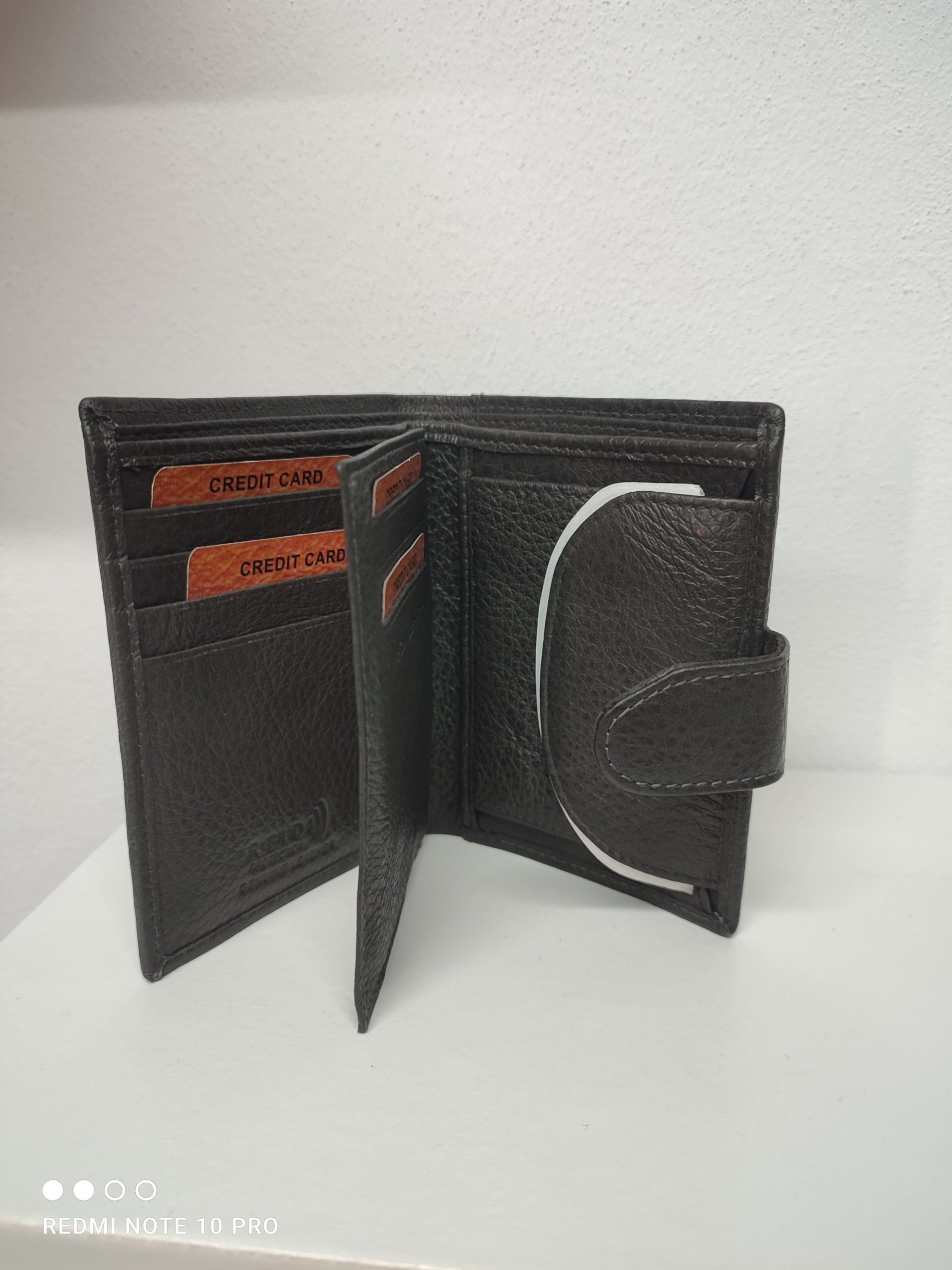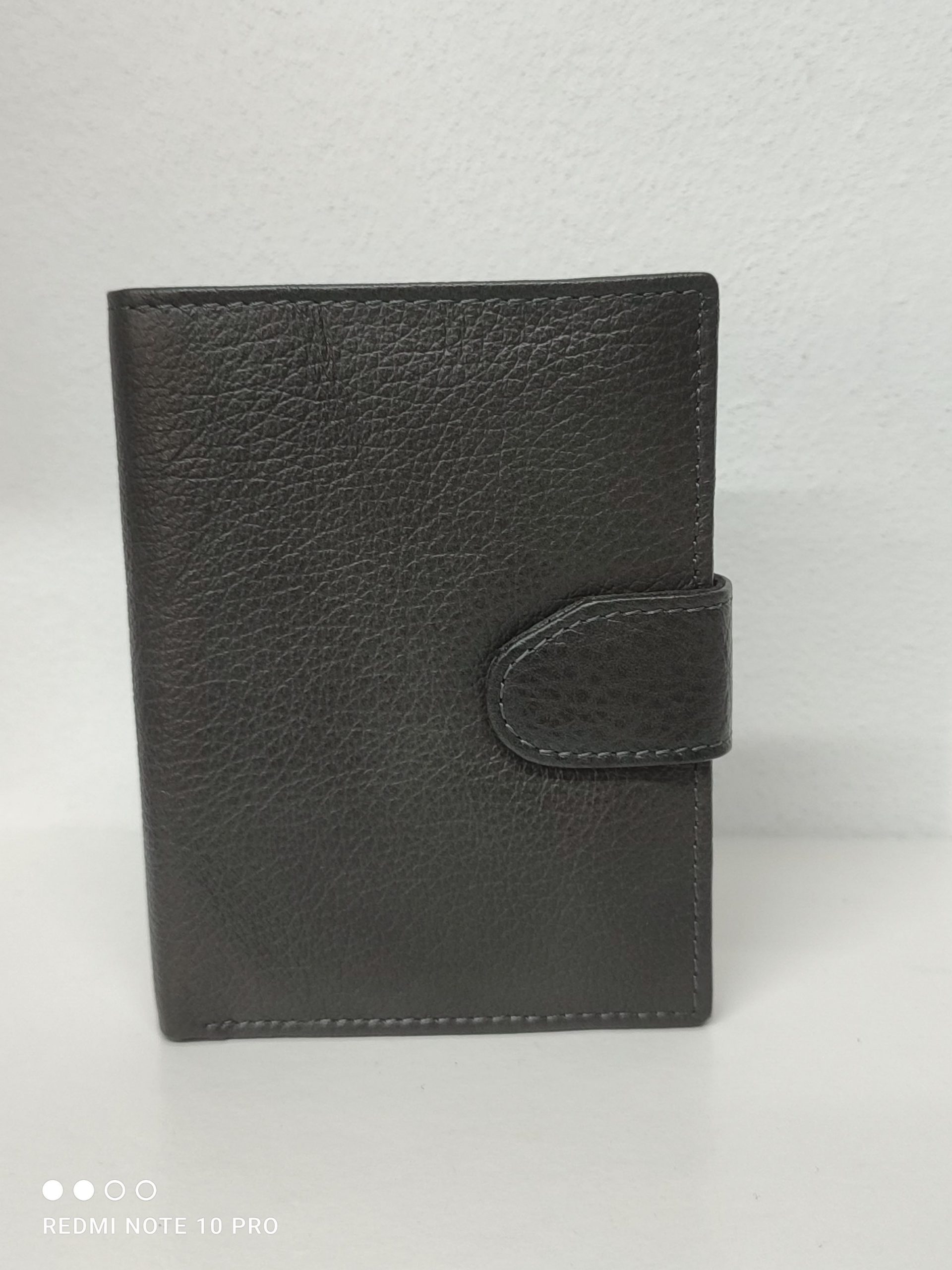 cartera en tono verde muy oscuro de piel de vacuno con billetera, monedero y tarjetero
