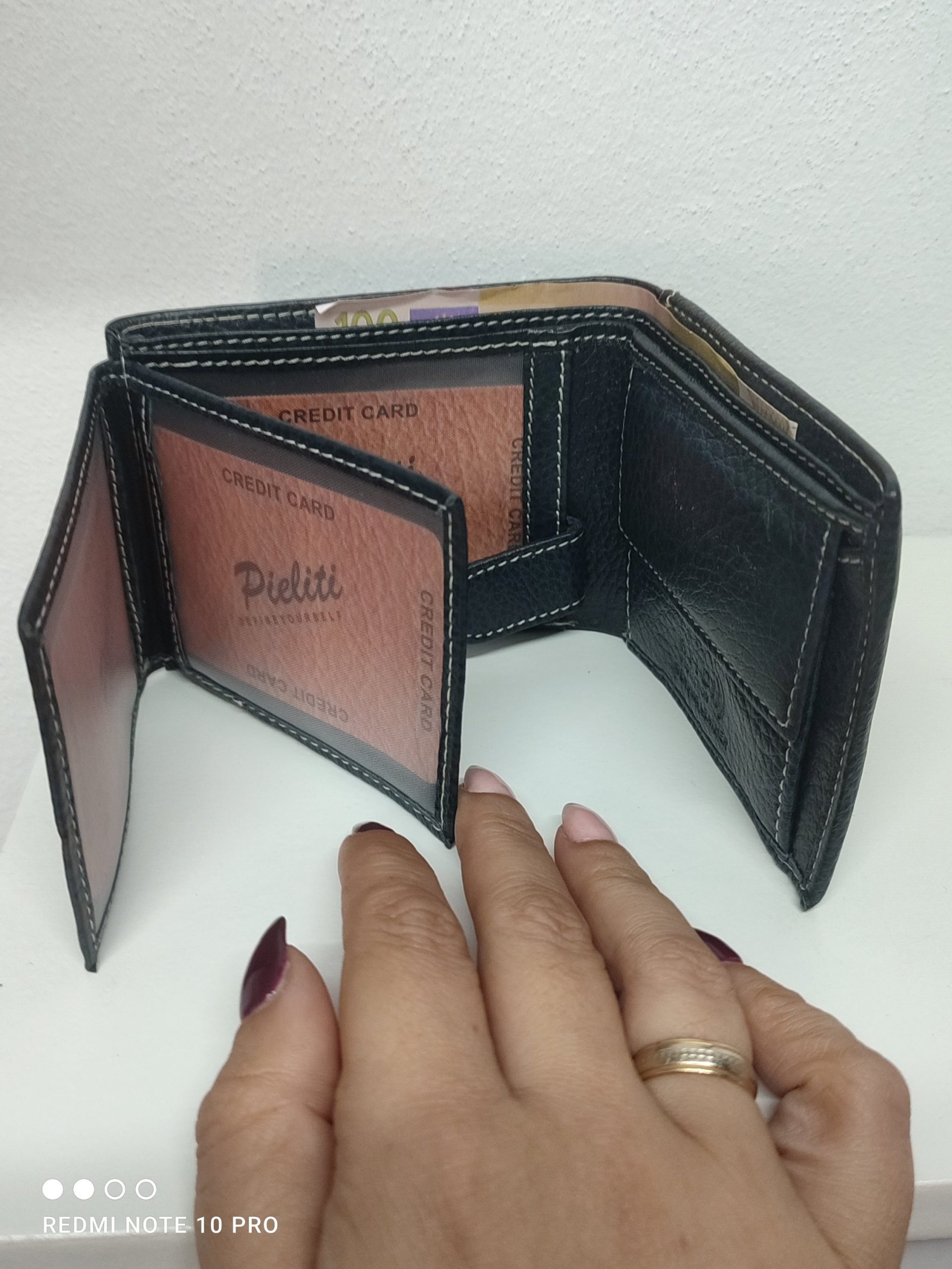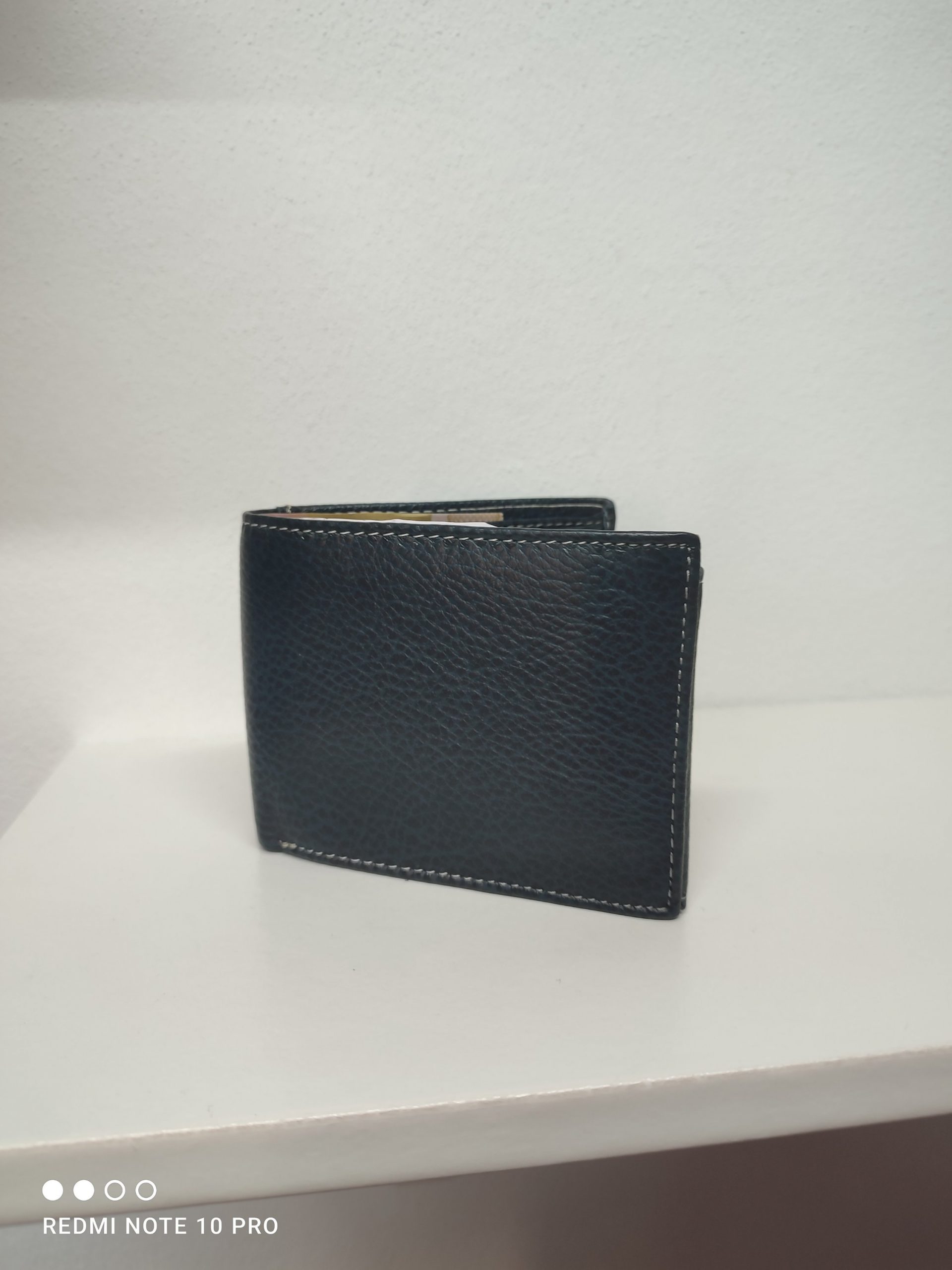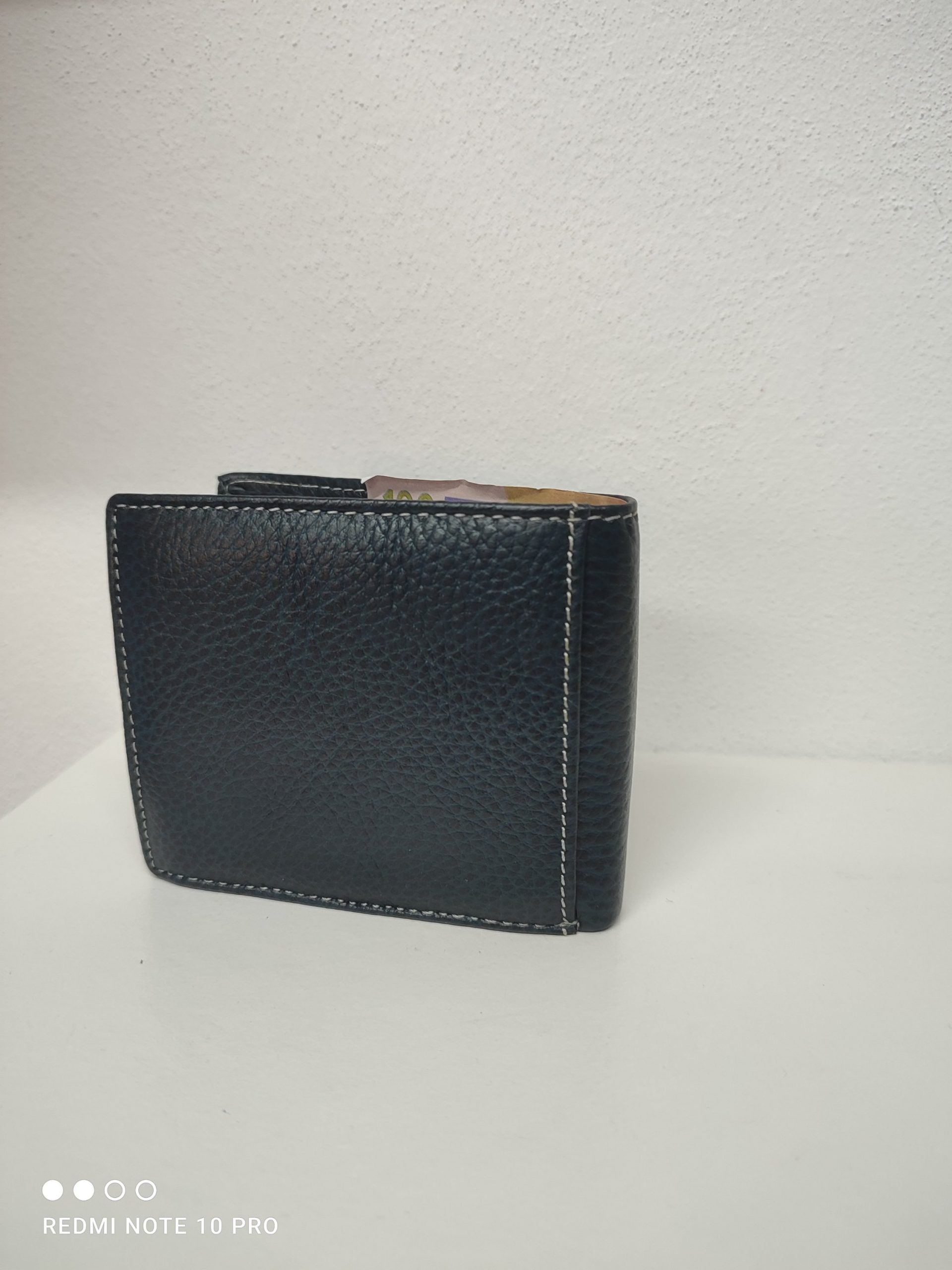 cartera en tono azul oscuro de piel de vacuno con tarjetero, monedero y billetera