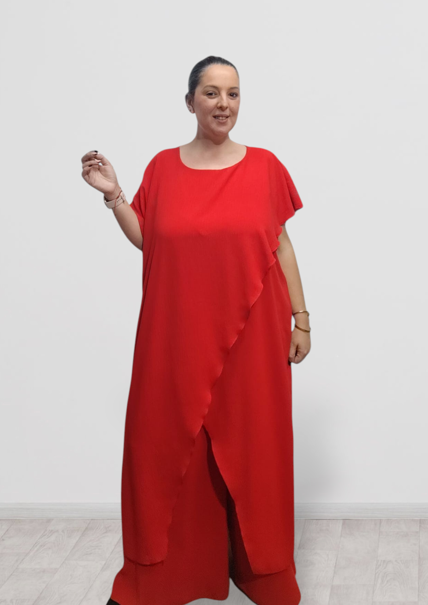 este conjunto da mucha talla y gracias a qué va cruzado no tendrás problema en cintura y cadera