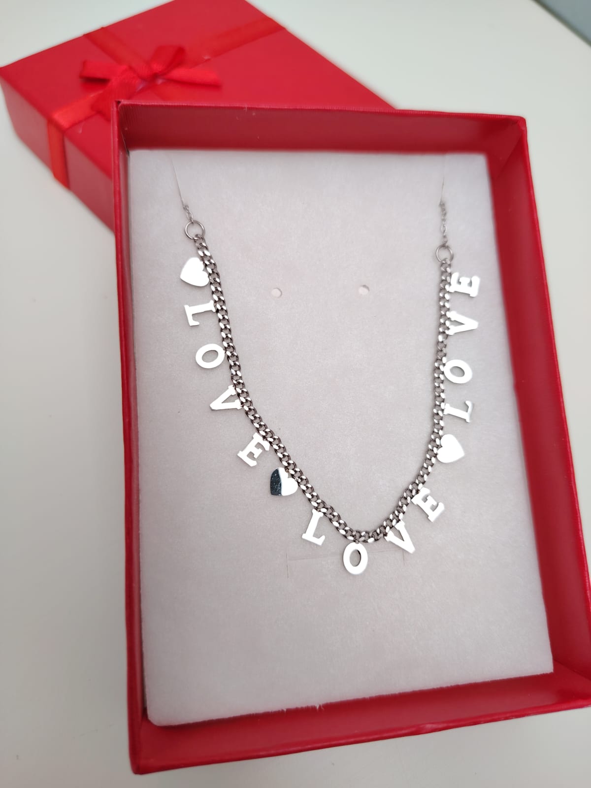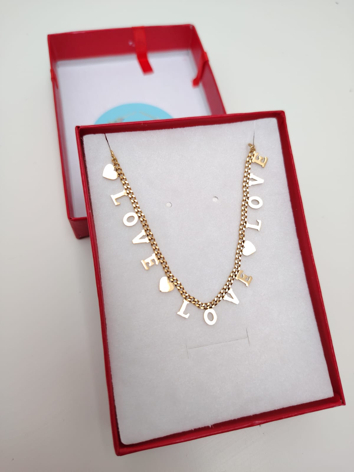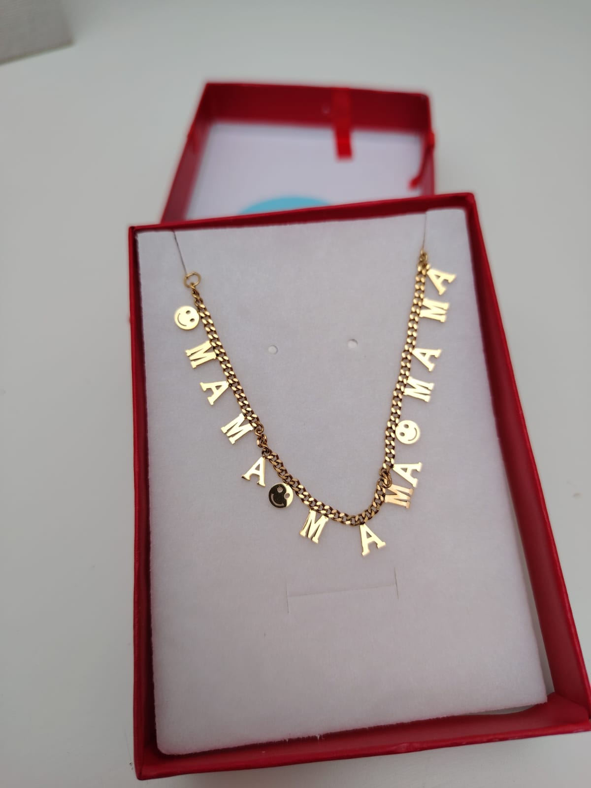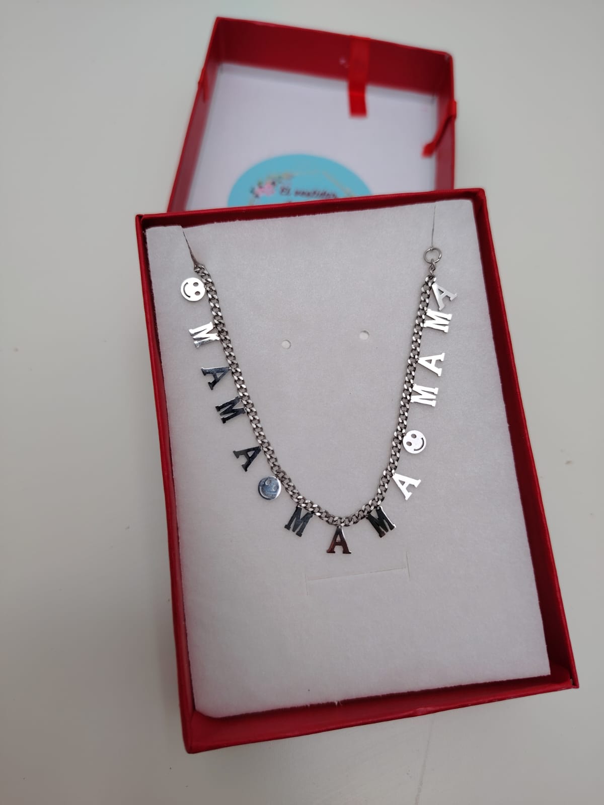 GARGANTILLAS CON LA PALABRA MAMA Y LA PALABRA LOVE DISPONIPLE EN PLATEADO Y DORADO