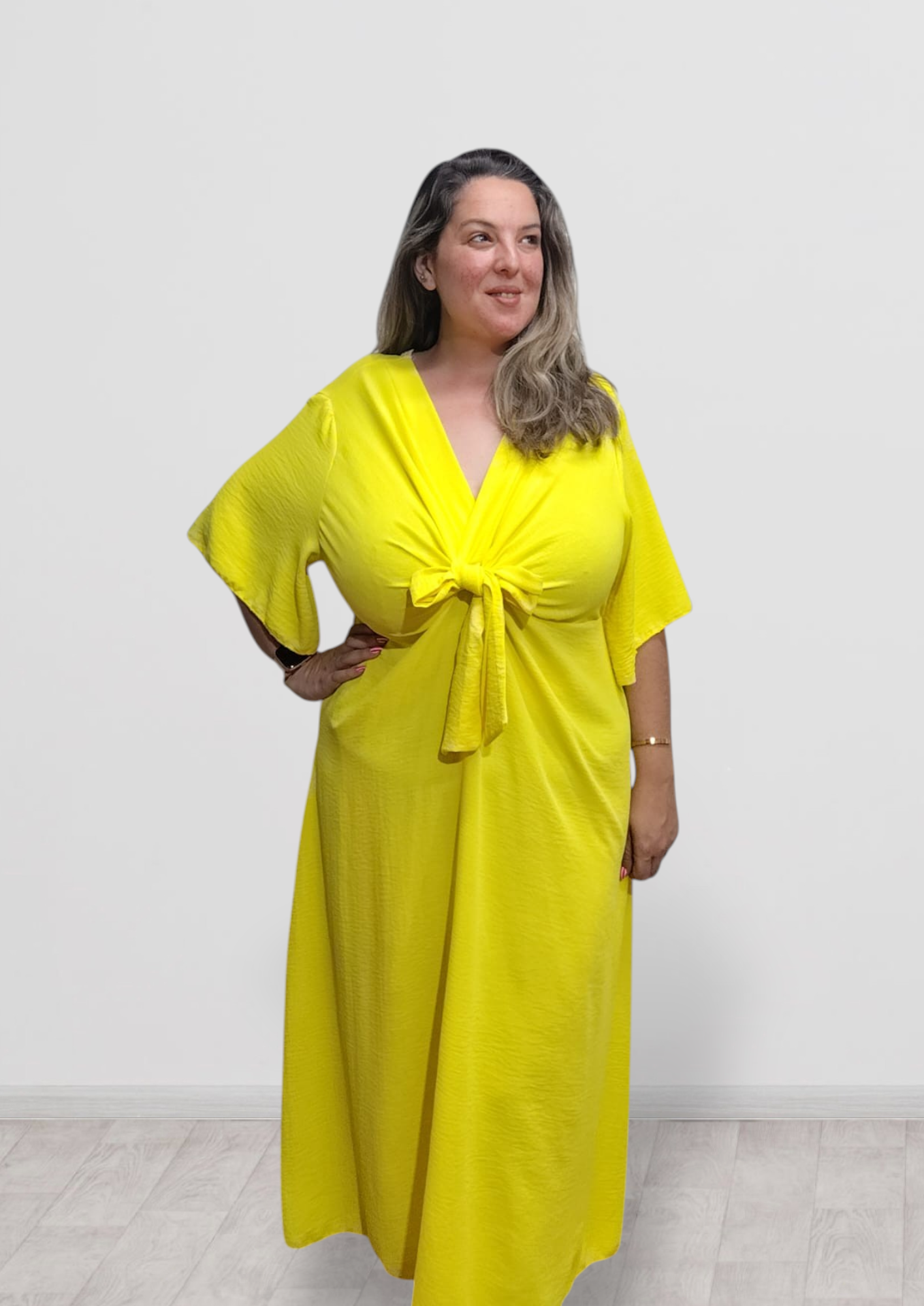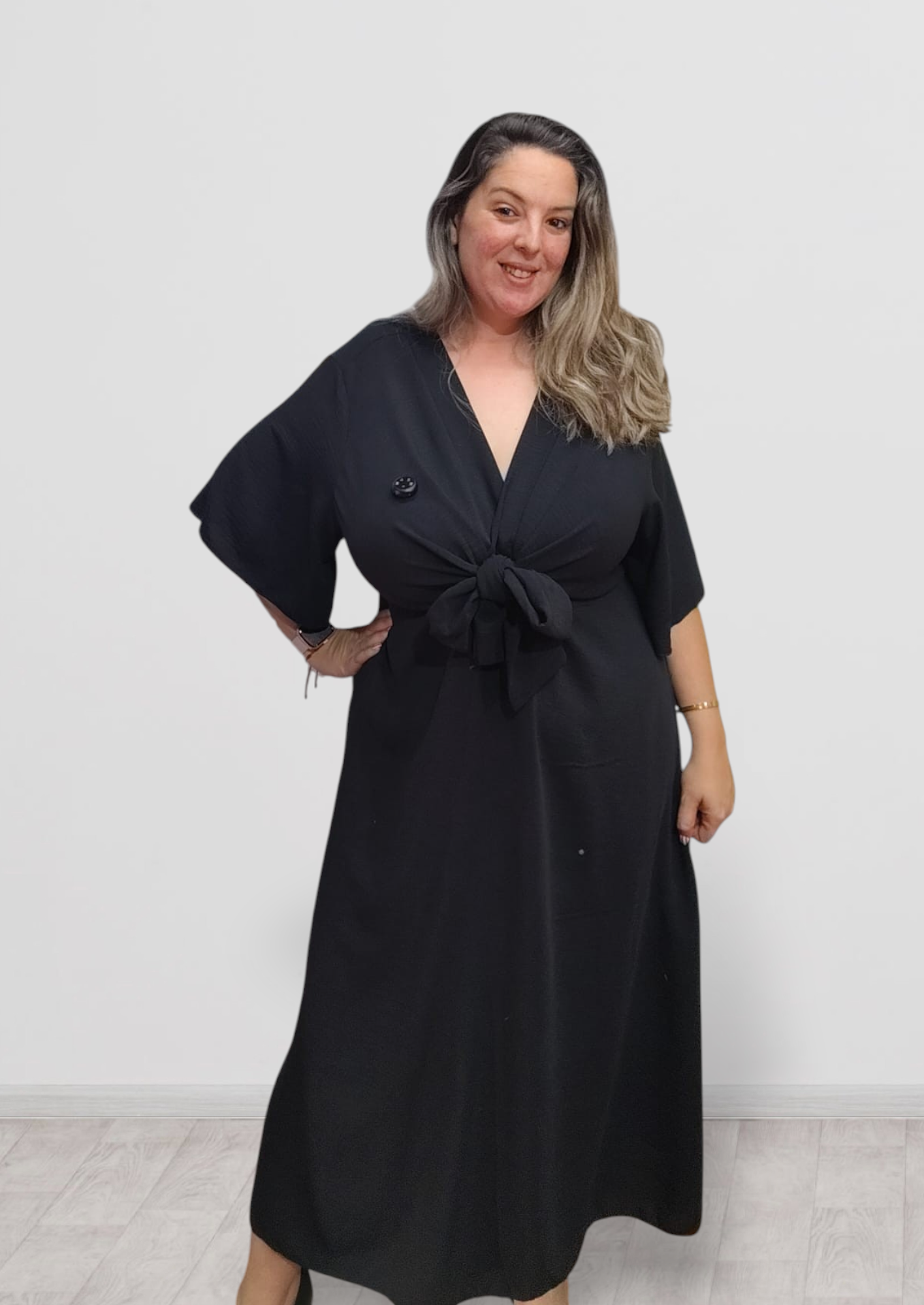 vestido midi con detalle en el pecho